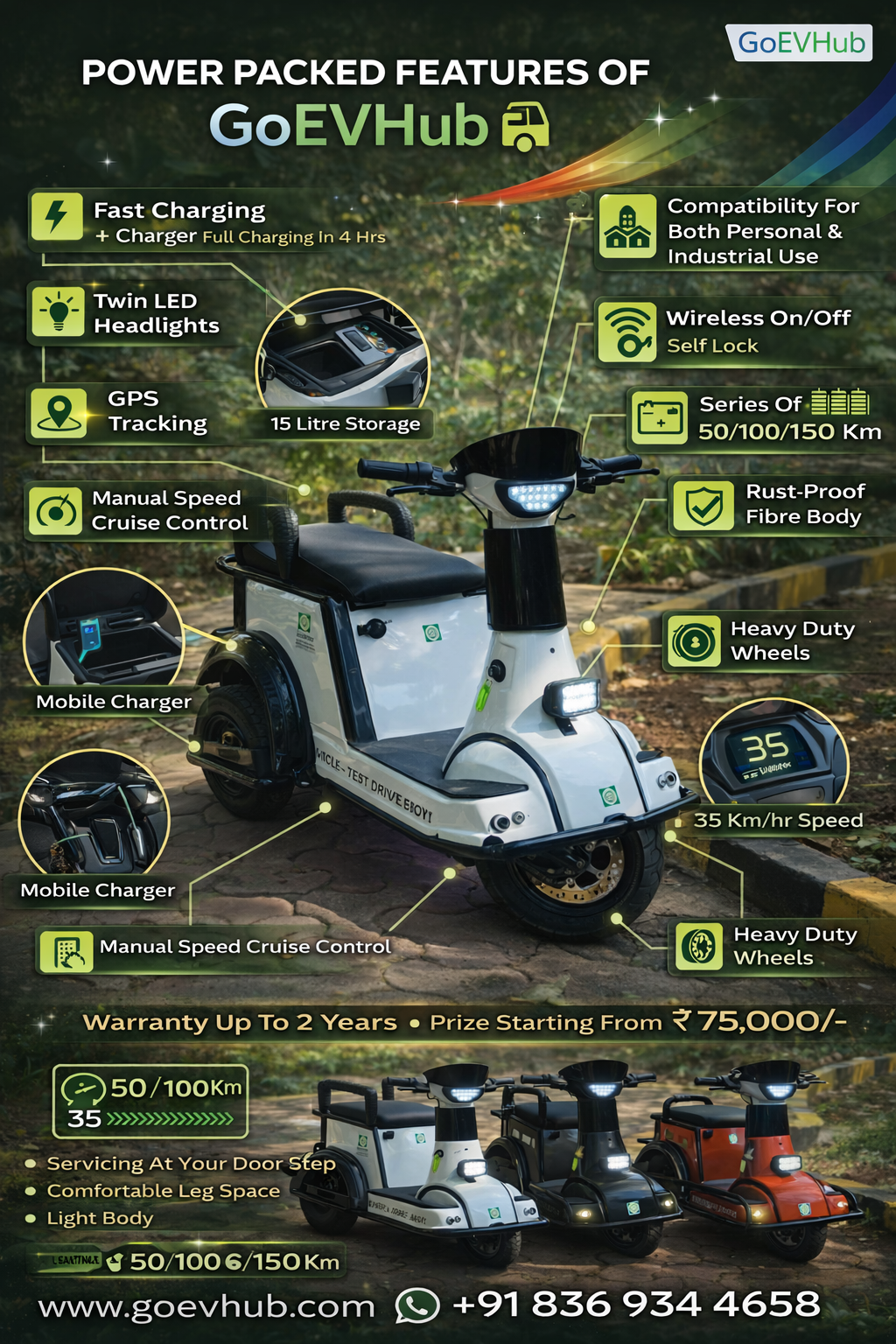 If you are looking for cost-effective in-campus electric vehicles, GoEV Hub is here to meet your requirements. As one of India’s leading electric vehicle manufacturers, we provide high-quality, reliable, and eco-friendly vehicles at competitive prices.